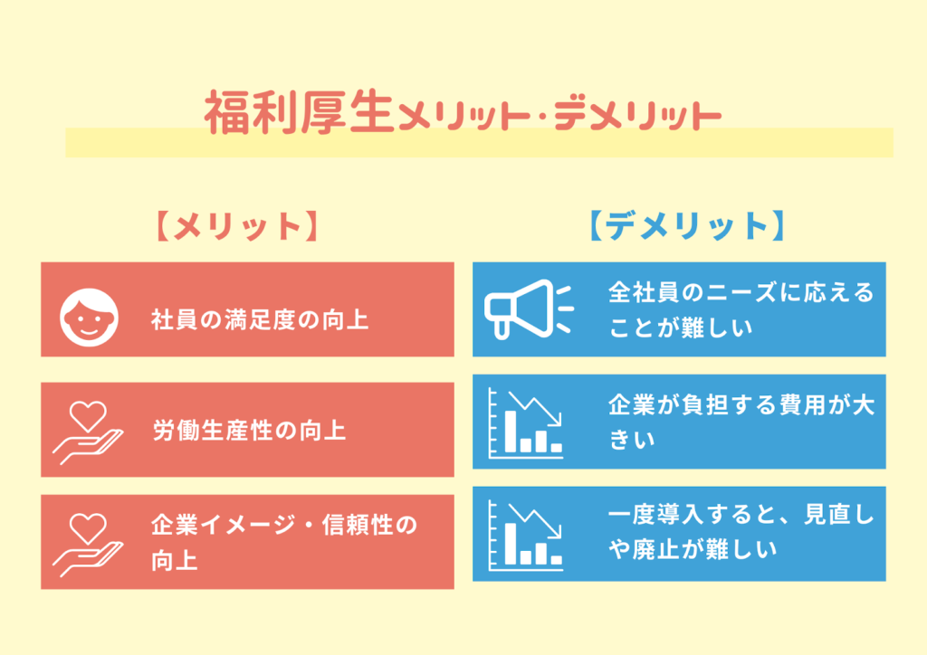 ここでは、福利厚生の導入によって企業側にどのようなメリットが期待できるのか、また、導入時に留意すべき点について整理します。