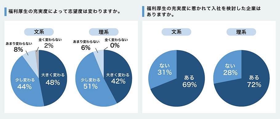 また、「福利厚生の充実度に惹かれて入社を検討した企業はありますか」という問いに対しても、約7割が「ある」と回答しています。